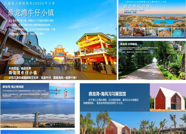 【鼎龍灣】通過 “文化傳承、生態(tài)環(huán)保、鄉(xiāng)村振興”三重價值體系,強化湛江濱海特色旅游,致力打造濱海旅游度假基地。項目以山、海、林、湖、濕地、田園、沙灘等自然景觀為基底,構筑“一帶一軸三核心,兩翼五區(qū)多節(jié)點”的大布局。建設德薩斯水世界、濕地海洋公園、鼎龍灣野生動物王國三大主題公園為核心集國際品牌酒店群、環(huán)球特色小鎮(zhèn)、濱海高爾夫、海田溫泉、非遺文化體驗、漁港碼頭美食街等多維業(yè)態(tài)于一體的全球休閑、娛樂、度假目的地。