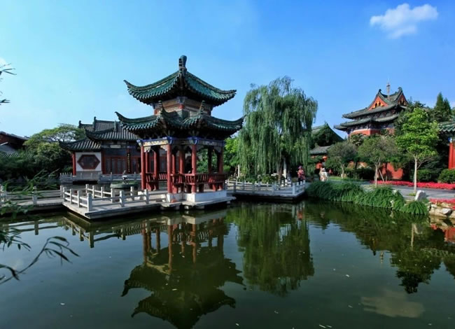 中餐后游覽中原園林美化之精品——【天波楊府】(游覽時間2小時左右),是為紀(jì)念北宋愛國名將楊業(yè)而恢復(fù)的宋代古建筑群,因位于京城西北隅天波門的金水河旁,故名天波楊府。它,體現(xiàn)了時代的完美情趣,堪稱中原園林美化之精品。置身天波,一步一景,目睹人工巧奪的奇山秀水,耳聞楊家滿門忠烈抗侵略感人涕下的動人故事,敬意油然生成。后參觀 “開封人的待客廳” 【小宋城】 ,自費品嘗河南小吃。整體以木質(zhì)仿古建筑為主,回廊流水,亭臺樓榭及戲臺上傳出的傳統(tǒng)戲曲演唱聲,仿佛瞬間把人帶回了質(zhì)樸又輕緩的北宋時代。抬起頭,房頂噴繪的藍(lán)天白云,加上周圍小吃攤販身上重點推薦:(開封灌湯包子、鍋貼、炒涼粉),游覽結(jié)束后入住酒店,入住后還可自由活動參觀有千年傳承的鼓樓夜市。